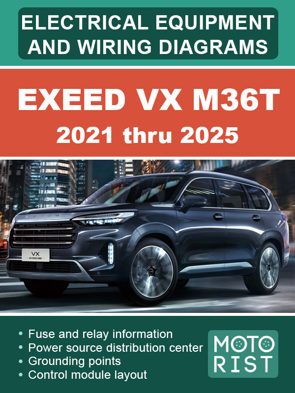 EXEED VX M36T (Эксид ВИкс М36Т). Электрооборудование и цветные электросхемы. Модели с 2021 по 2025 год, оборудованные бензиновыми двигателями