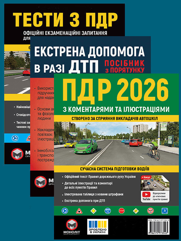 Комплект Правила дорожнього руху України 2026 (ПДР 2026) з коментарями та ілюстраціями + Тести ПДР + Екстрена допомога в разі ДТП