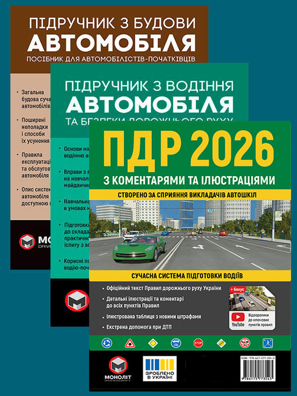 Комплект Правила дорожнього руху України 2026 (ПДР 2026) з коментарями та ілюстраціями + Підручник з будови автомобіля + Підручник з водіння автомобіля