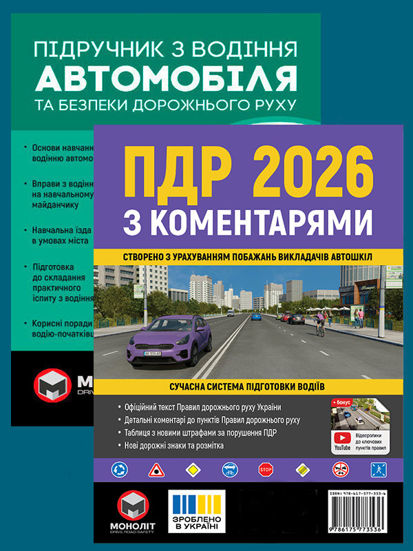 Комплект Правила дорожнього руху України 2026 (ПДР 2026) з коментарями + Підручник з водіння автомобіля
